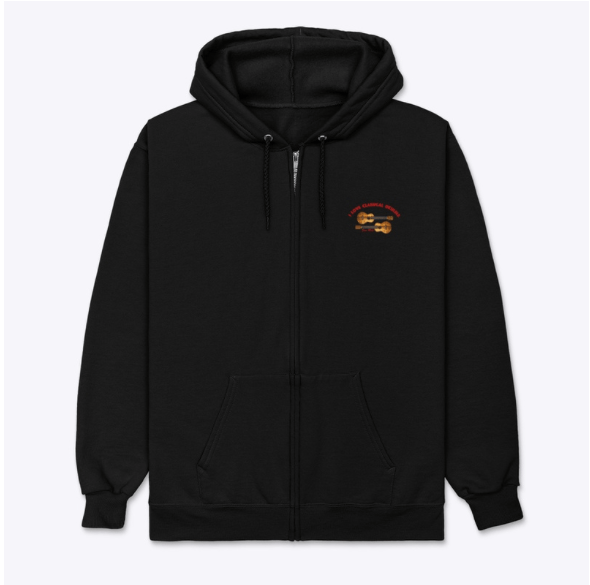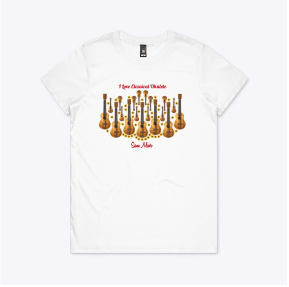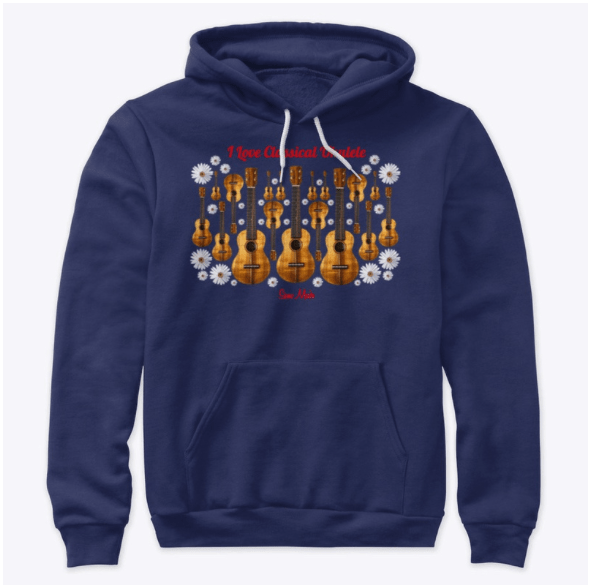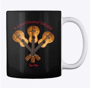 The designs below, and others, are available from my store on Spring. There are hoodies, tee shirts, mugs, socks, pouches, stickers and more, all available in my I Love Classical Ukulele store. To see any of the specific items below, click on the image description.